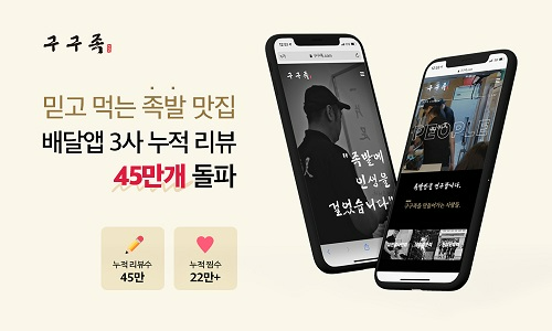 족발 전문 프랜차이즈 구구족이 론칭 1년 4개월 만에 배달 앱 누적 리뷰 수가 45만 건을 넘어섰다고 26일 밝혔다.